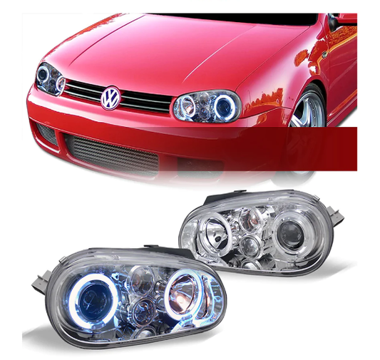 VXMOTOR for 2005-2009 Ford Mustang - Smoke Crystal DRL Led Halo Rim Ring Head Lights Lamps Pair NB