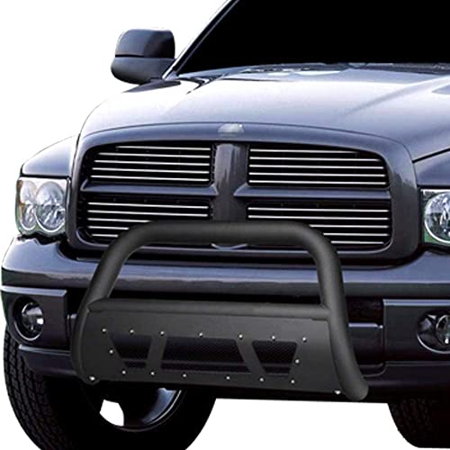 VXMOTOR for 99-07 Chevy Silverado, for 00-06 Suburban/Tahoe, for 99-07 GMC Sierra, for 00-06 Yukon 1500 - Matte Black Studded Mesh Bull Bar Brush Front Bumper Grill Grille Guard with Skid Plate V2