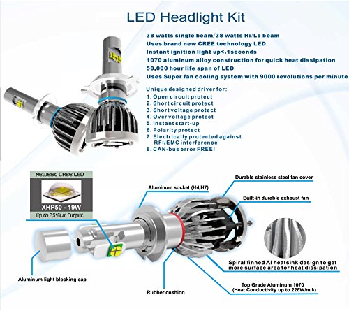 VXMOTOR H7 2pcs (pair) CREE LED Headlights BULB Kit 76W 10000LM 6000K Cool White - High Power Super Bright