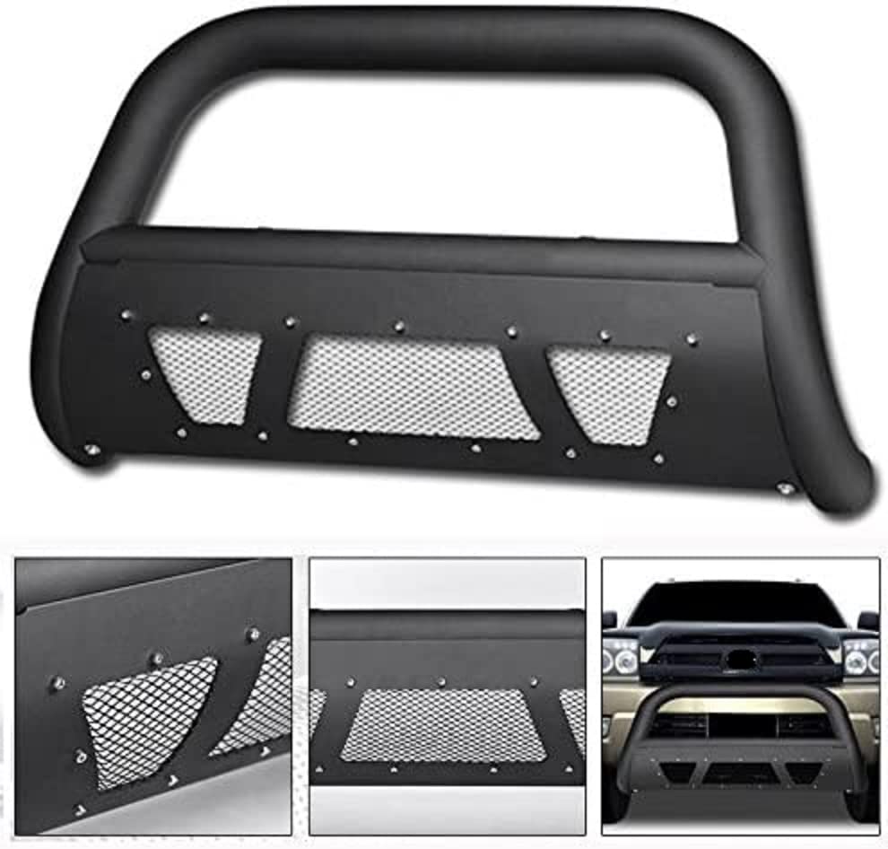 VXMOTOR for 2003-2009 Toyota 4Runner ; for 2003-2009 Lexus GX470 Matte Black Heavyduty Studded Mesh Bull Bar Brush Push Front Bumper Grill Grille Guard with Skid Plate