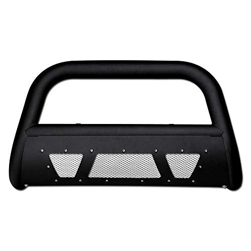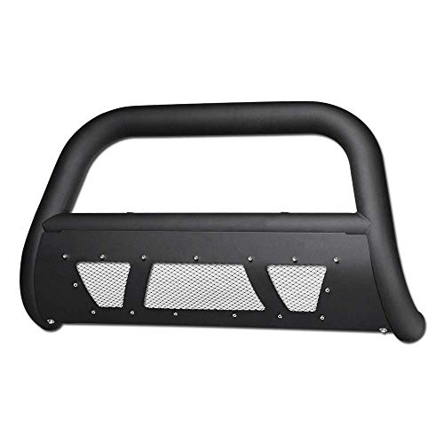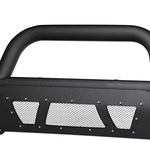 VXMOTOR for 99-07 Chevy Silverado, for 00-06 Suburban/Tahoe, for 99-07 GMC Sierra, for 00-06 Yukon 1500 - Matte Black Studded Mesh Bull Bar Brush Front Bumper Grill Grille Guard with Skid Plate V2