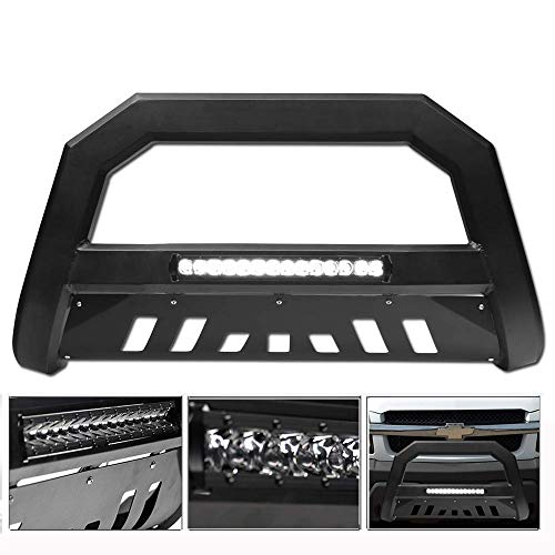 VXMOTOR for 99-07 Chevy Silverado ; GMC Sierra ; for 00-06 Suburban/Tahoe ; Yukon/Yukon XL 1500 Matte Black AVT Aluminum LED Light Bull Bar Front Bumper Grill Grille Guard with Skid Plate
